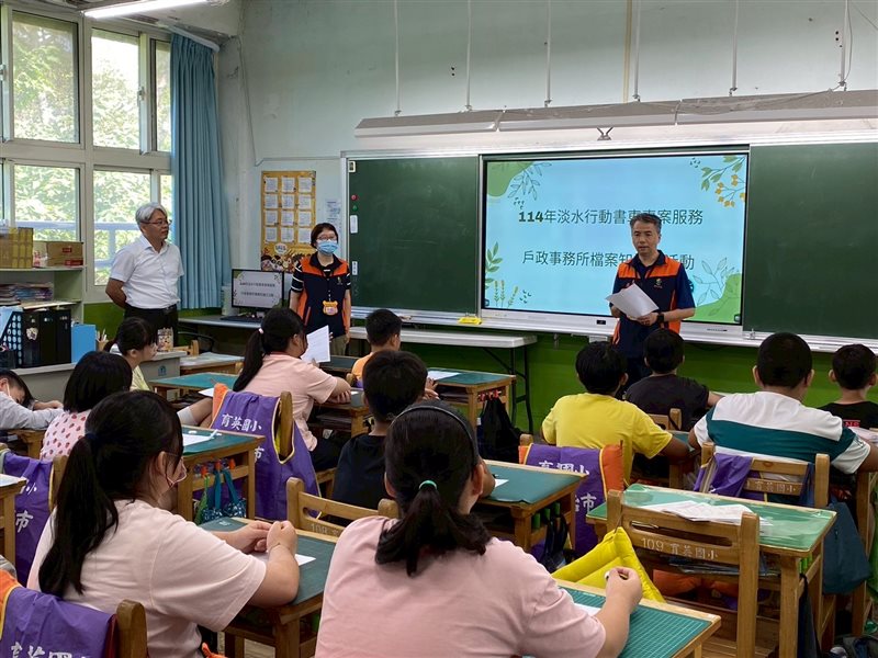 114年9月11日新北市立圖書館行動書車-淡水育英國小推廣檔案應用。