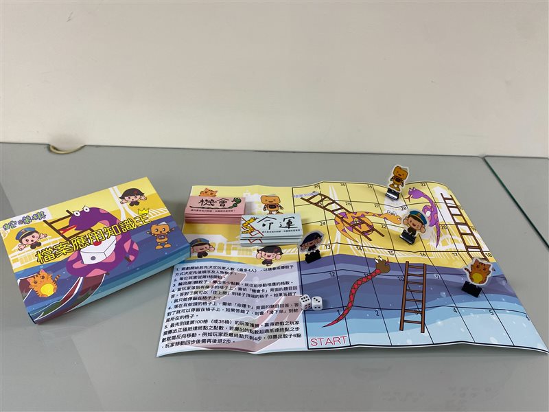 本件作品全部都是由新北市淡水戶政事務所同仁發想、設計、繪圖、裁切及組裝等,除骰子及人物棋子的底座外,全部都是同仁DIY製成。